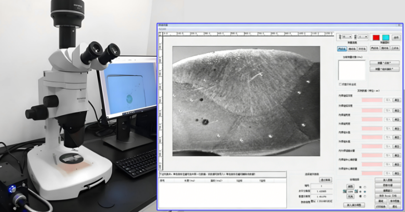 本机是一台专业测量焊接熔深的显微镜,主要应用于机械制造行业中焊接质量的检测,此台机器不仅有熔深测量显微镜系统同时拥有平面影像测量系统。该系统可以对焊接产品的对接,交接,搭接和T型焊接部分的熔身情况进行成像,编辑,测量,数据导出,及报告打印等。