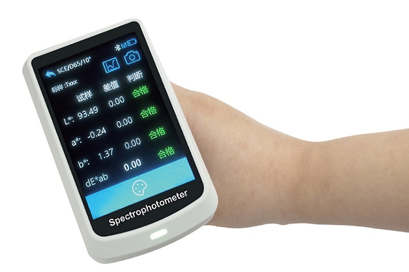 | 测量指标 | 光谱反射率,CIE-Lab,CIE-LCh,Hunter Lн, ан, bн,CIE-Luv,XYZ,Yxy,RGB,色差(ΔE*ab,ΔE*cmc,ΔE*94,ΔE*00), 白度(ASTM E313-00,ASTM E313-73,CIE,ISO2470/R457,AATCC,Hunter,Taube Berger Stensby), 黄度(ASTM D1925,ASTM E313-00,ASTM E313-73), 黑度(My,dM),沾色牢度,变色牢度,Tint(ASTM E313-00), 色密度CMYK(A,T,E,M),同色异谱指数Milm,孟塞尔,遮盖力,力份(染料强度,着色力) | ||